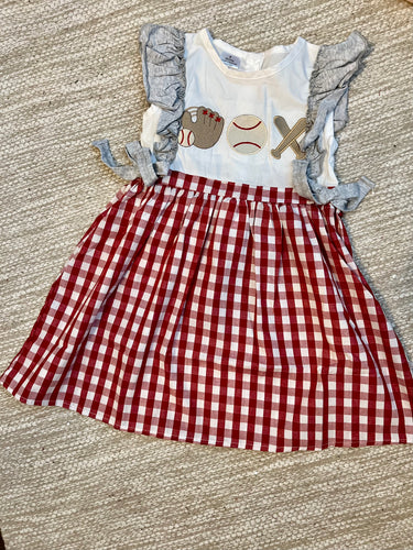 Red Baseball Applique Dress