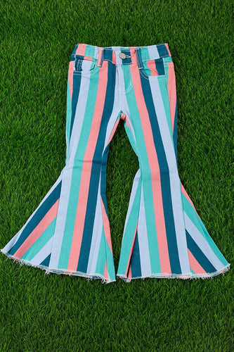 Multicolor Stripe Flare Denim Jeans