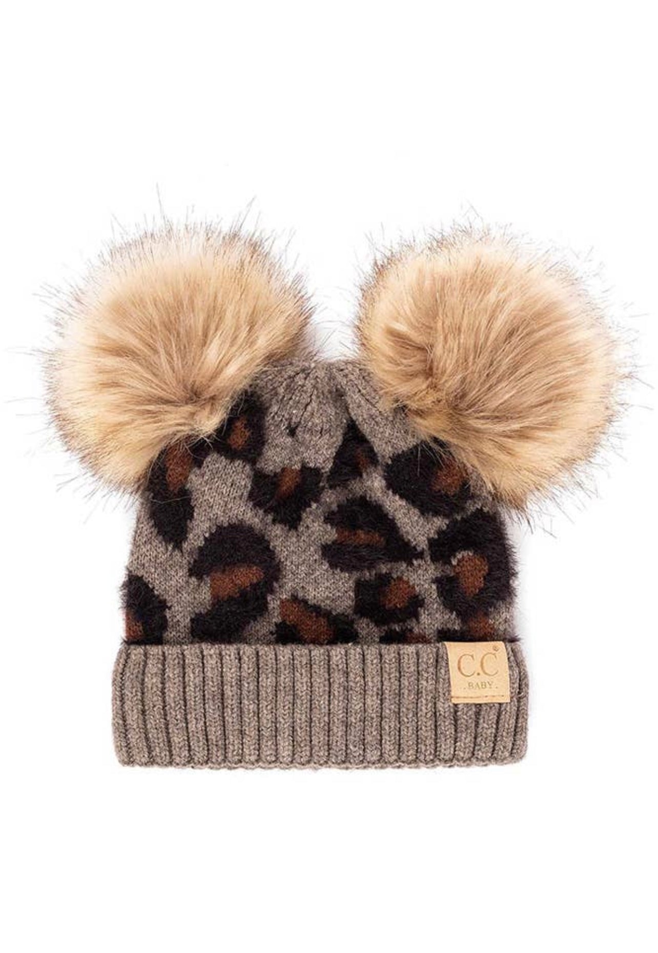 Leopard Double Pom Beanie Hat