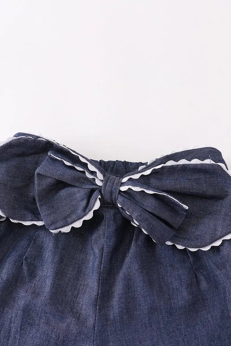 Red Plaid Bow Tie Shorts Set